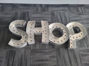 Regelmatig plaatsen wij doosletters tegen de gevel of verlichte letters tegen de gevel